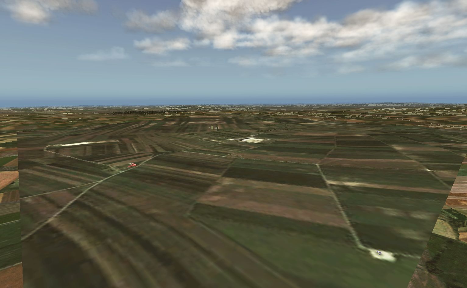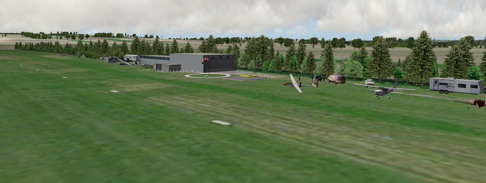 Die Szenerie ist photorealisitisch an Hand von vor Ort aufgenommenen Photos. Neben der Graspiste und den Gebäuden am Flugplatz ist auch die Umgebung so weit für VFR-Flug hilfreich abgebildet. Wer tief einfliegt, wird die im Approach-Chart angeführten Ölpumpen, Wälder, usw. finden. Da der Platz nur bei Tageslicht geöffnet ist, schließt sich die Schranke bei der Einfahrt in der Nacht.