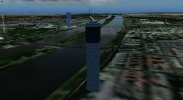 Rechts der 109 Meter hohe neue Tower; das alte Gebäude im Vordergrund wurde 2005 abgerissen.