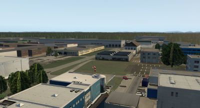 - Photorealistische Gebäude in der Umgebung des Heli-Ports