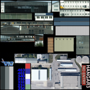 In dieser Textur ist auch das "Wellblech" für den Rundhangar drin (rechts etwas oberhalb der Mitte. In der rechten unteren Ecke des Texturfile sieht man auch die Draufsicht, die wir für das Dach des Hangars verwenden wollen.